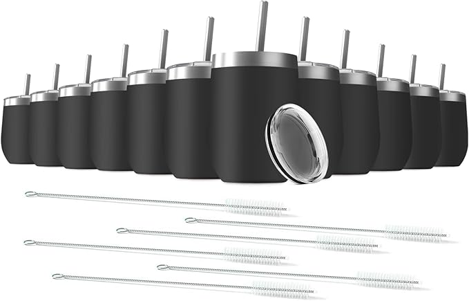 12oz Wine Tumbler with Lid With straw Stainless Steel Wine Tumbler Cups Double Wall Vacuum Insulated Travel Mugs Stemless Cup 12 Pack(Black Sale