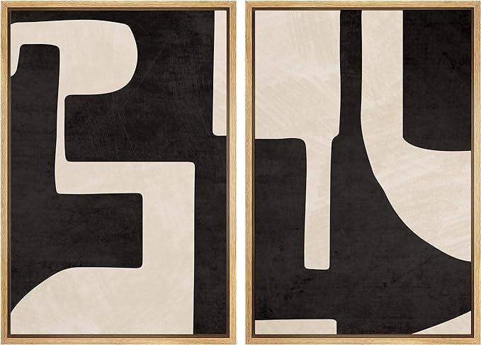 MUDECOR Framed Canvas Print Wall Art Black & White Geometric Paint Stroke Decor Abstract Nature Illustration Modern Art Decorative Multicolor Geometric Minimal for Bedroom - 24"x36"x2 Natural