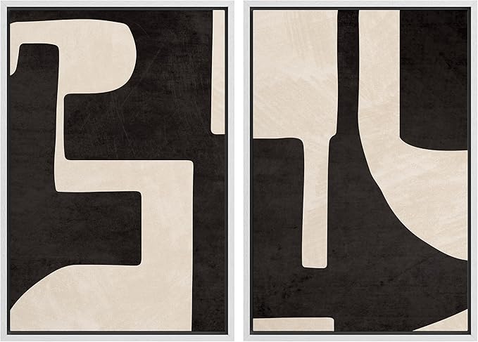 MUDECOR Framed Canvas Print Wall Art Black & White Geometric Paint Stroke Decor Abstract Nature Illustration Modern Art Decorative Multicolor Geometric Minimal for Bedroom - 16"x24"x2 White Sale