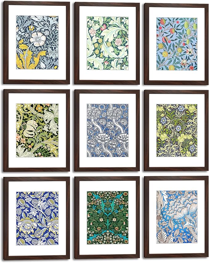 11x14 Picture Frame Set of 9 for Pictures 8x10 with Mat or 11x14 Without Mat, Wall or Tabletop Gallery Photo Frames Walnut