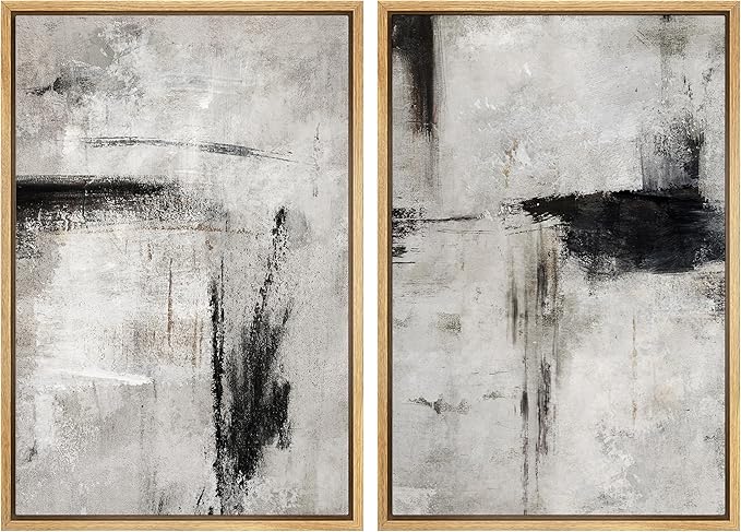 MUDECOR Framed Canvas Print Wall Art Grey Black Abstract Shape Illustrations Modern Art Decorative Bohemian Colorful Chic for Living Room, Bedroom, Office - 24"x36"x2 Natural