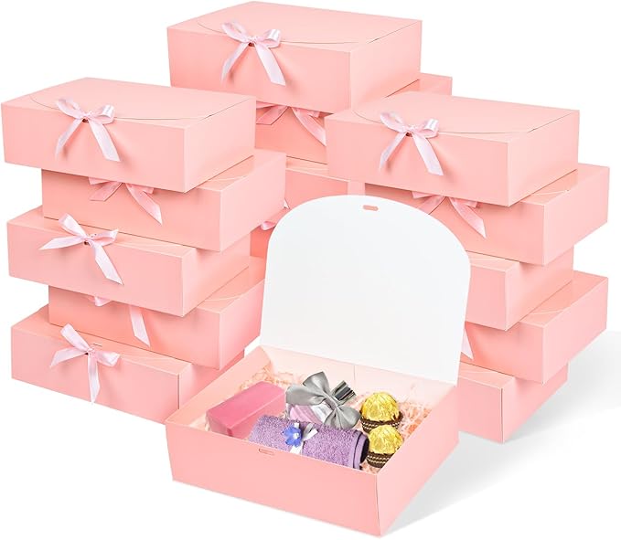 12Pack Pink Gift Boxes with Lids, 129.83.1 Inch Groomsmen Proposal Box, Luxury Pink Gift Box with Ribbon for Wedding, Birthday, Party, Christmas, Bridesmaid, Graduation