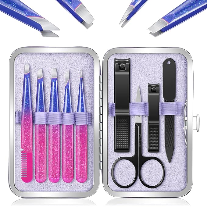 MORGLES Eyebrow Tweezers for Women and Nail Clipper Set with Travel Case Precision Tweezers for Facial & Ingrown Hair Removal with Scissors
