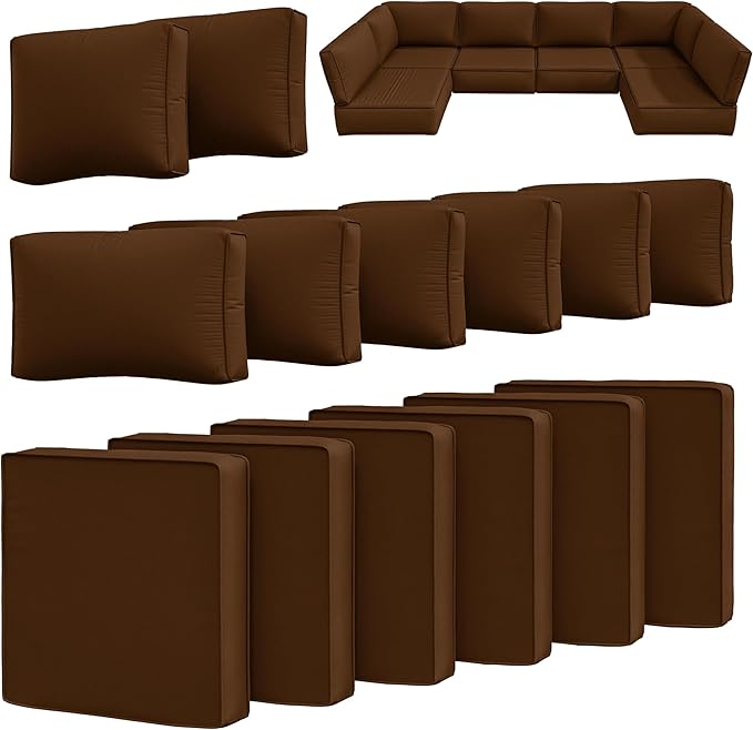 14 Pcs Outdoor Cushion Slipcovers Outdoor Patio Cushion Covers Replacement Waterproof with Zipper for Outdoor Furniture, Patio Sofa Couch 3 Sizes, Covers Only