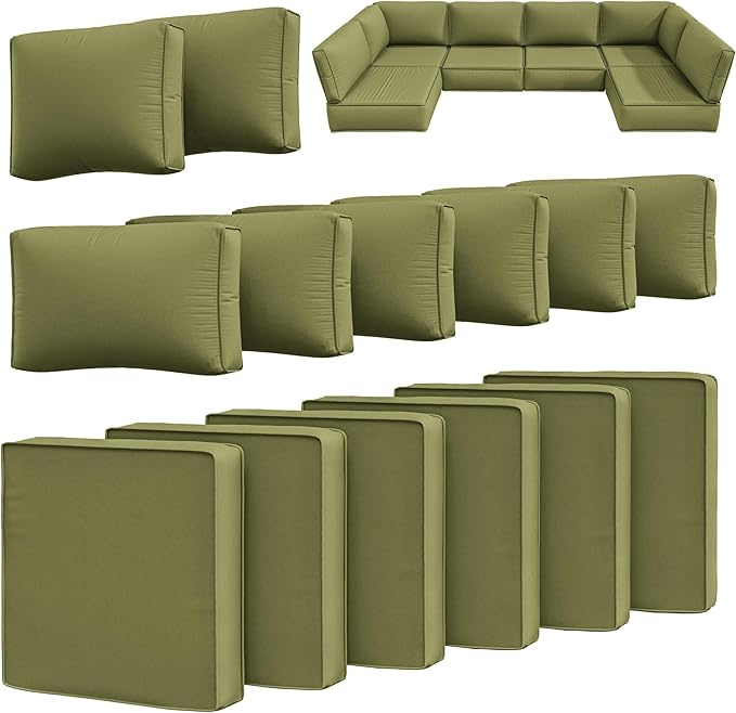 14 Pcs Outdoor Cushion Slipcovers Outdoor Patio Cushion Covers Replacement Waterproof with Zipper for Outdoor Furniture, Patio Sofa Couch 3 Sizes, Covers Only