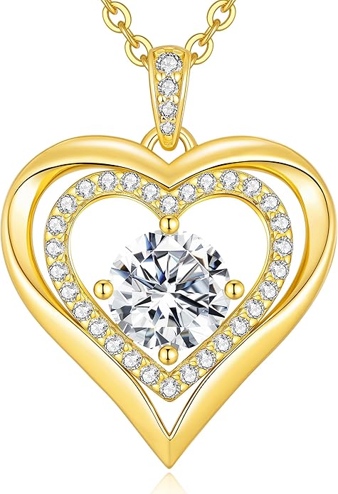 Moissanite Heart Pendant Necklaces for Women, 925 Sterling Silver Gold Plating Lab-Created Gem Necklace Engraved with 'I LOVE YOU', Ideal Anniversary Birthday Christmas Valentine Engagements Mothers Day Jewelry Gifts for Mom Wife Girlfriend Daughter Her Sale