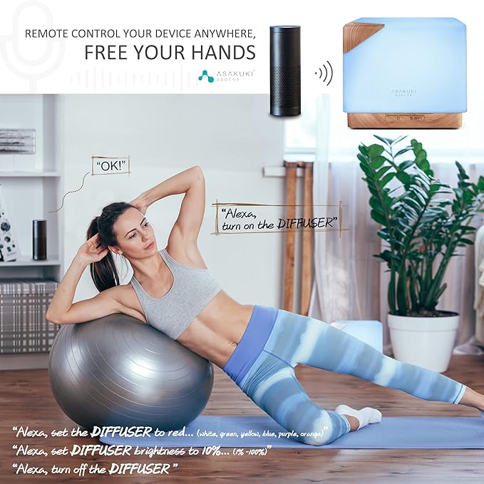 ASAKUKI Smart WiFi Essential Oil Aromatherapy Diffuser, Easy Connect with Alexa and Google Home Phone App Voice Control 700 ml Ultrasonic Diffuser, Create Schedules 7 LED Colors Humidifier