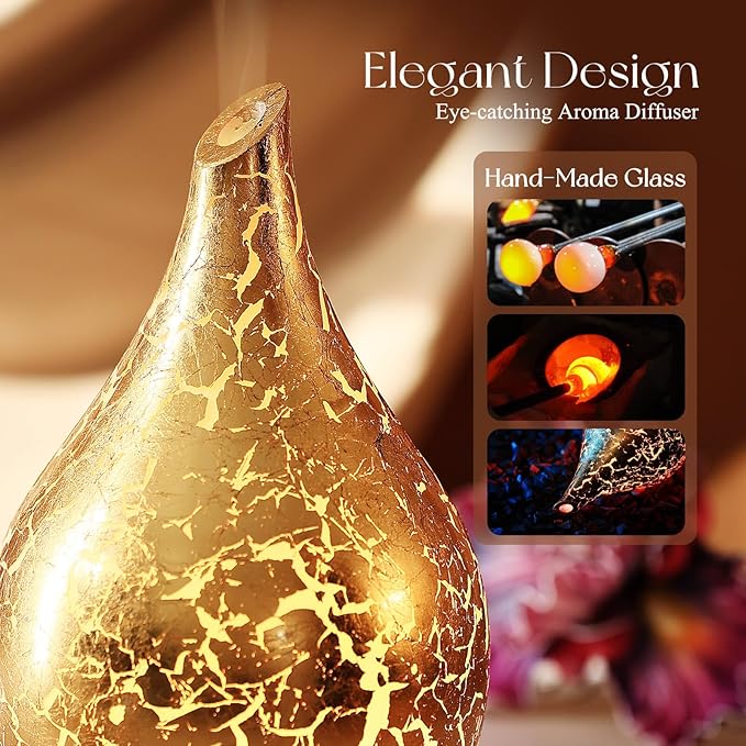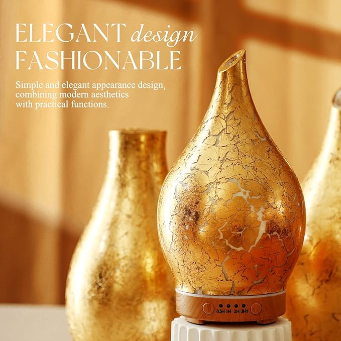 Porseme Essential Oil Diffuser Glass Aromatherapy Ultrasonic Humidifier, Air Refresh Auto Shut-Off, Timer Setting, BPA Free for Home Hotel Yoga Leisure SPA Gift 150ml Last 6H