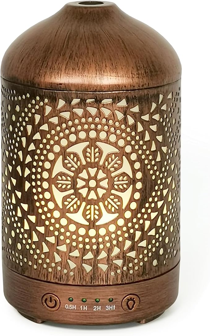 Earnest Living Essential Oil Diffuser Metal Diffuser 100 ml Timers Night Lights and Auto Off Function Home Office Humidifier Aromatherapy Diffusers for Essential Oils Gift