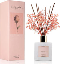 Cocorrína Premium Reed Diffuser Set with Preserved Baby's Breath & Cotton Stick Sandalwood Rose | 6.7oz Scent Fragrance Oil Diffuser for Bedroom Bathroom Home Décor