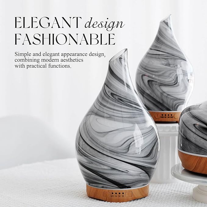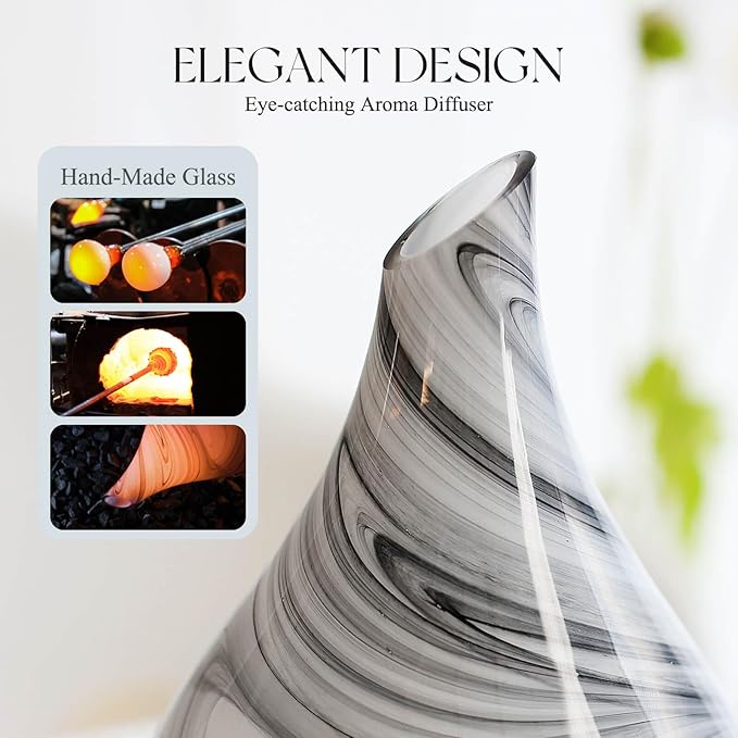 Porseme 280ml Essential Oil Diffuser Glass Color Changing Aroma Air Diffusers Aromatherapy Ultrasonic Cool Mist Humidifier 7 Running Hours Waterless Auto-Off for Sleeping, Yoga, Office, Spa (Ink)