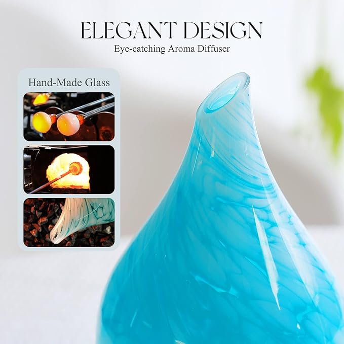 Porseme 150ml Essential Oil Diffuser Glass Color Changing Aroma Air Diffusers Aromatherapy Ultrasonic Cool Mist Humidifier 6 Running Hours Waterless Auto-Off for Sleeping Yoga Office Spa (Blue Wave)