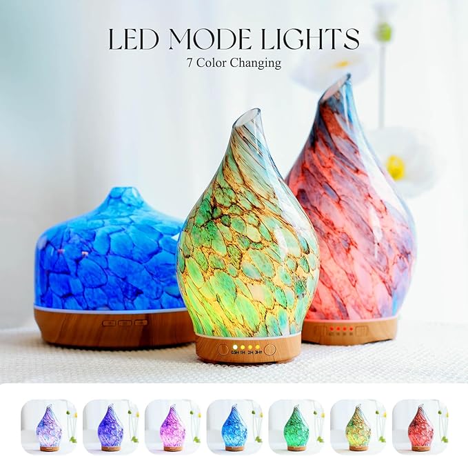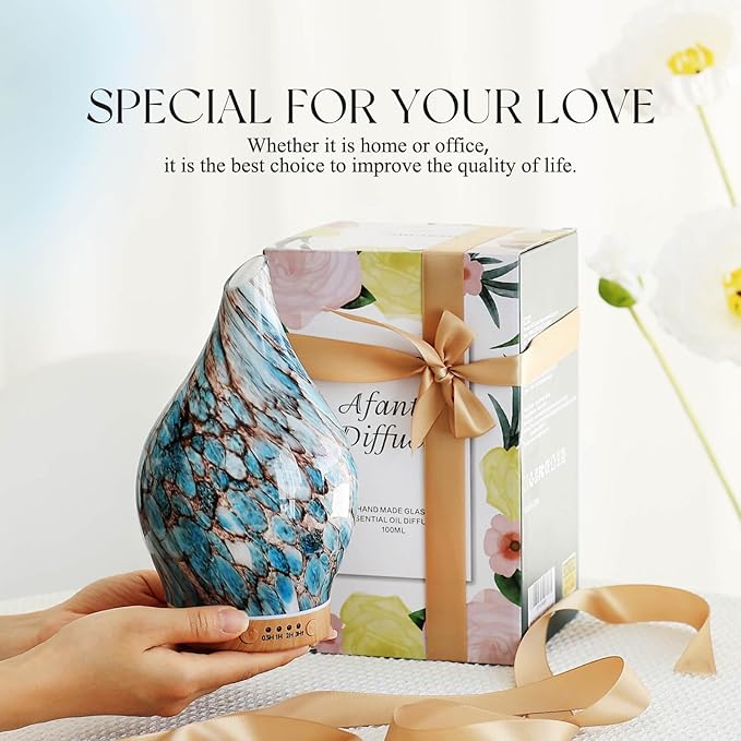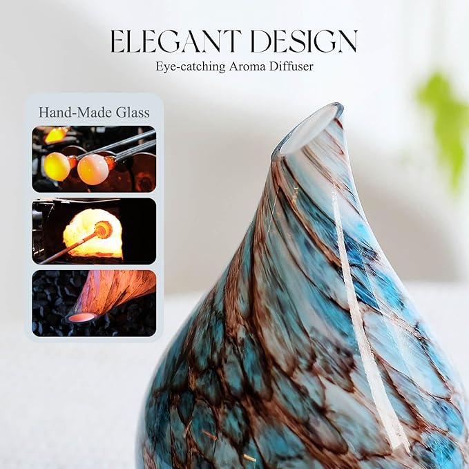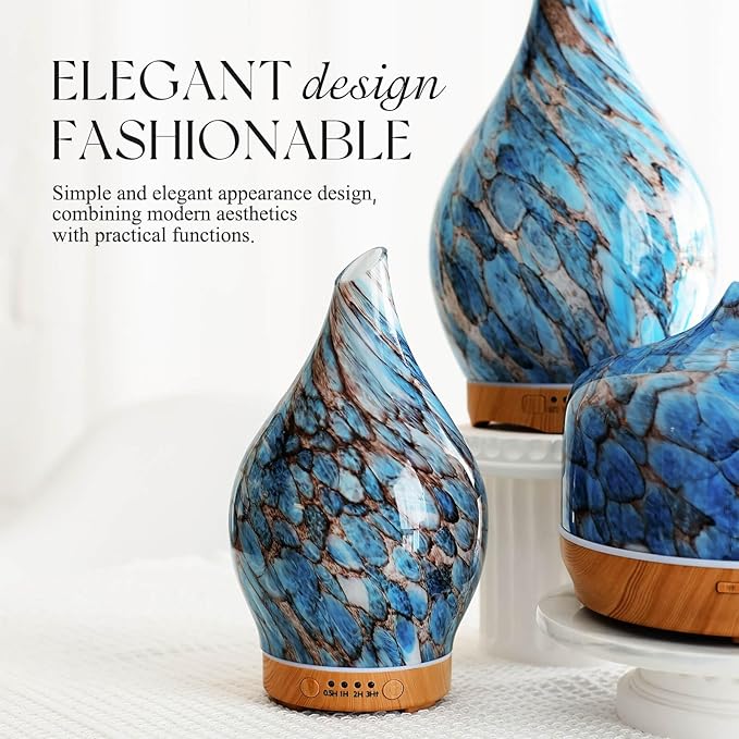 Porseme 150ml Glass Essential Oil Diffuser Aromatherapy Ultrasonic Cool Mist Humidifier 6 Running Hours Waterless Auto-Off Air Diffusers for Sleeping,Yoga,Office Working Spa and Rest (Light Blue)