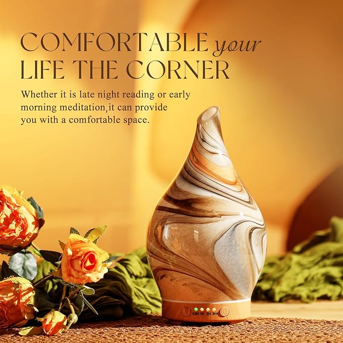 Porseme 150ml Glass Essential Oil Diffuser Aromatherapy Ultrasonic Cool Mist Humidifier 6 Running Hours Waterless Auto-Off Air Diffusers for Sleeping,Yoga,Office Working Spa and Rest (Deep Desert)