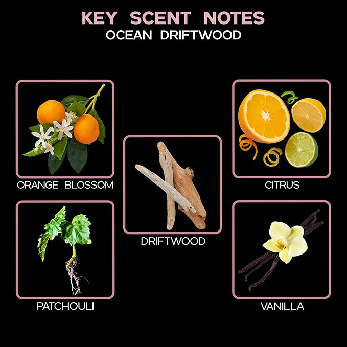 LOVSPA Reed Diffuser Set, Ocean Driftwood Scented Oil Diffuser with Sticks, Home Fragrance Accessories for Bathroom Shelf Decor, Aroma Diffusers for Home or Office Desk, USA Made