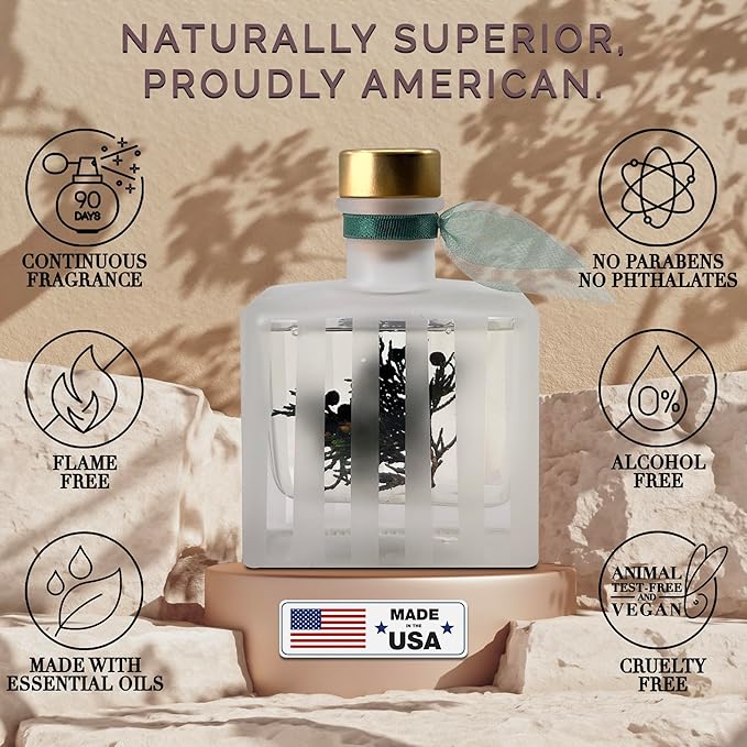 LOVSPA Reed Diffuser Set, Fraser Fir Scented Oil Diffuser with Sticks, Home Fragrance Accessories for Bathroom Shelf Decor, Aroma Diffusers for Home or Office Desk, USA Made