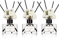 WEALD TRIBE Real Flower Reed Diffuser Set of 3 for Bathroom Shelf Decor, Lemongrass,Eucalyptus & Mint,Velvet Vanilla Scent Sticks Defusers with Essential Oils | Home Office Fragrance(1.7 fl oz/Pack)
