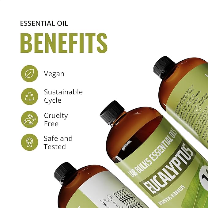 Eucalyptus Essential Oil (2 Pack) for Diffusers, Home Care, Candles, Aromatherapy, 16 oz Bulk Bottle, Eucalyptus Oil Spray