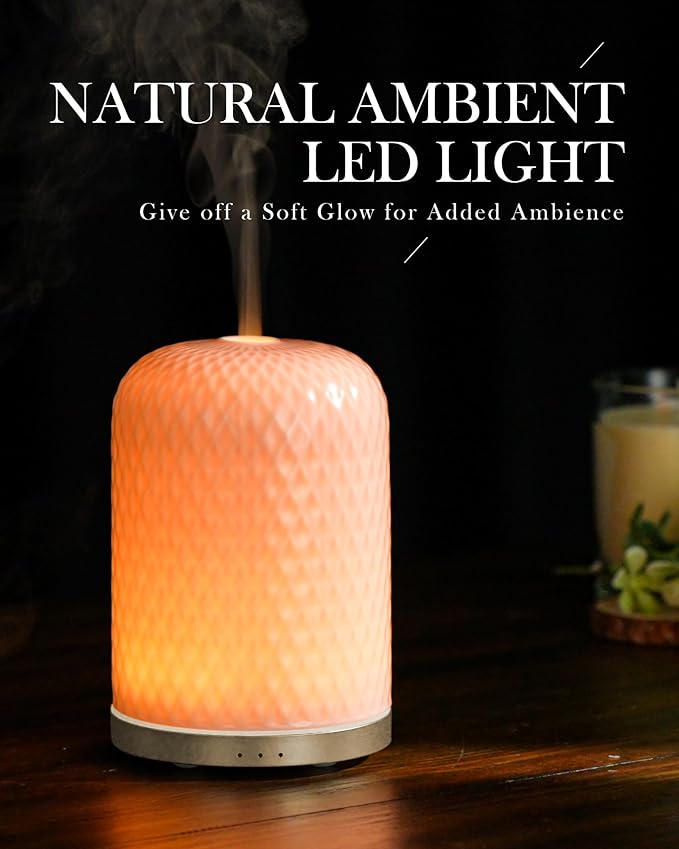 Essential Oil Diffusers,Diffusers for Essential Oils Large Room,110ML Ceramic Diffuser with USB Cable, Warm Ambient Light, Aromatherapy Diffuser Home Decor, Gift Choice, Pink