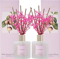 Cocorrína Reed Diffuser Set - White Peach& Oolong Reed Diffuser 2 Packs 6.7oz Scent Fragrance Oil Diffuser for Bedroom Bathroom