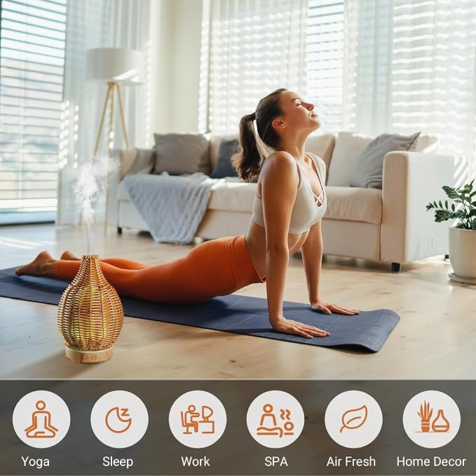 Boho Essential Oil Diffuser for Home Rattan Weaving with Remote Control, 100mL 7 Changing Color Lights Ultrasonic Aroma Humidifier, Noiseless Auto-Off Sleep Mode for Bedroom Office Workout