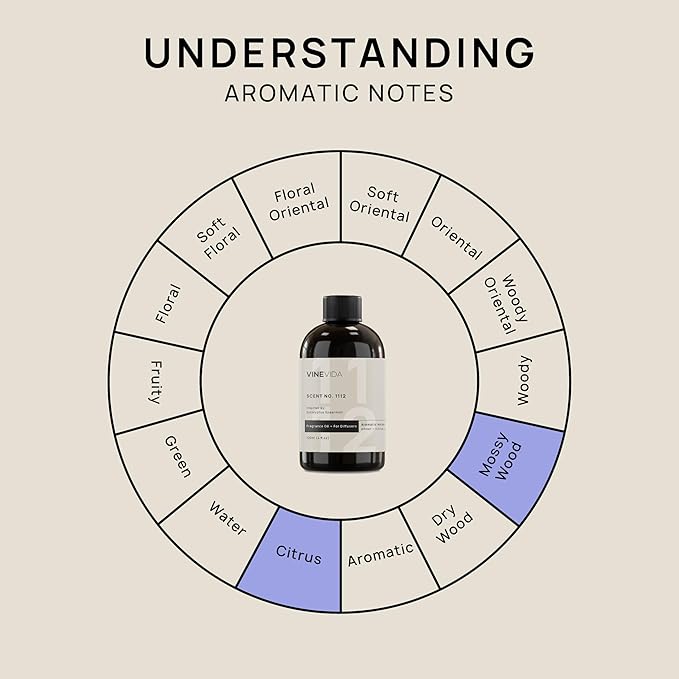 VINEVIDA [4 Fl Oz] Scent NO. 1112 Fragrance Oil for Cold Air Diffusers, Aromatic Notes of Amber Citrus Spearmint, Essential Oils for Diffuser Oil Refill & Air Freshener Room Spray
