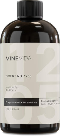 VINEVIDA [16 Fl Oz] Scent NO. 1205 Fragrance Oil for Cold Air Diffusers, Aromatic Notes of Dark Musk Oud Wood, Essential Oils for Diffuser Oil Refill & Air Freshener Room Spray