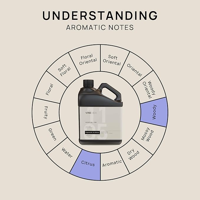 VINEVIDA [Gallon (128 Fl Oz)] Scent NO. 1105 Fragrance Oil for Cold Air Diffusers, Aromatic Notes of Citrus Coconut Woody, Essential Oils for Diffuser Oil Refill & Air Freshener Room Spray