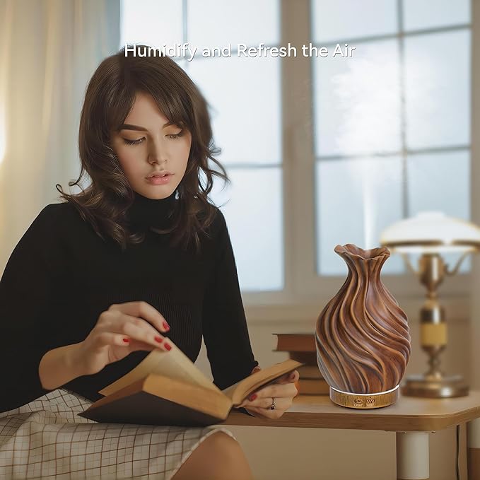 200ml Essential Oil Diffuser for Home, Wood Grain Cover Aromatherapy Diffuser, Cool Mist Humidifier with Safe Auto Shut-Off and 2 Mist Modes & 7 Color LED Night Lights for Office Room (VASE01)