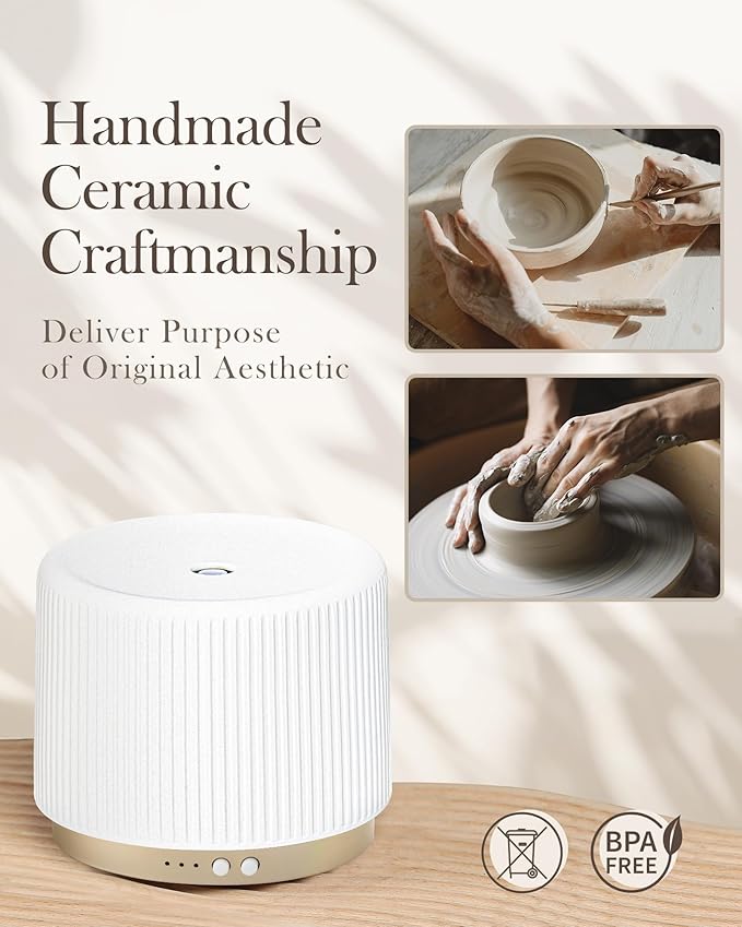 280ml Ceramic Essential Oil Diffuser,Ultrasonic Cool Mist Decorative Aromatherapy Diffuser with Auto Shut-Off,Quiet Operation,3 Timer Settings for Large Rooms,Home,Office,SPA,Yoga & Bedroom