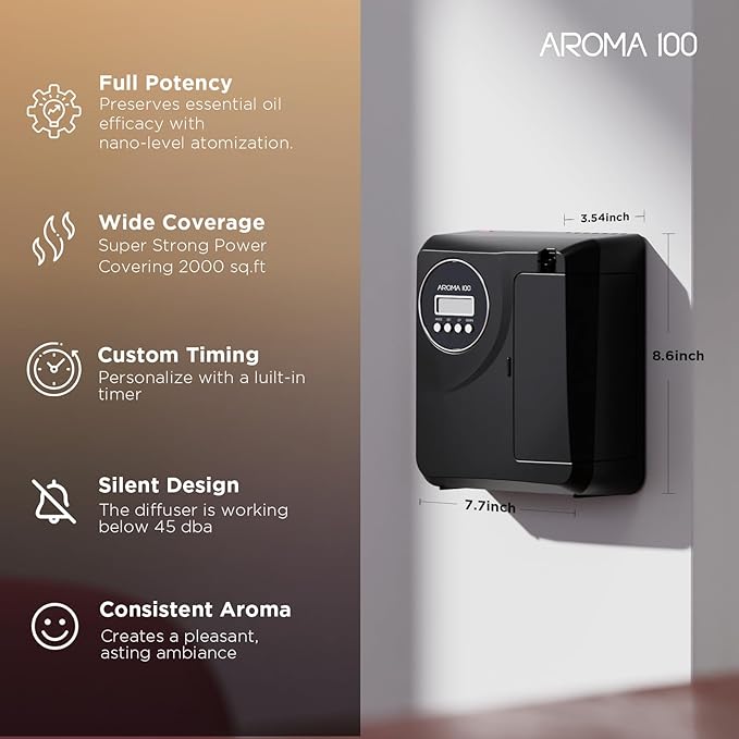 Waterless Diffuser for Essential Oil 2000sq.ft Coverage Nebulizer Nano Air Freshener Smart Diffusers Scent Aromatherapy Diffuser for Home Room Office