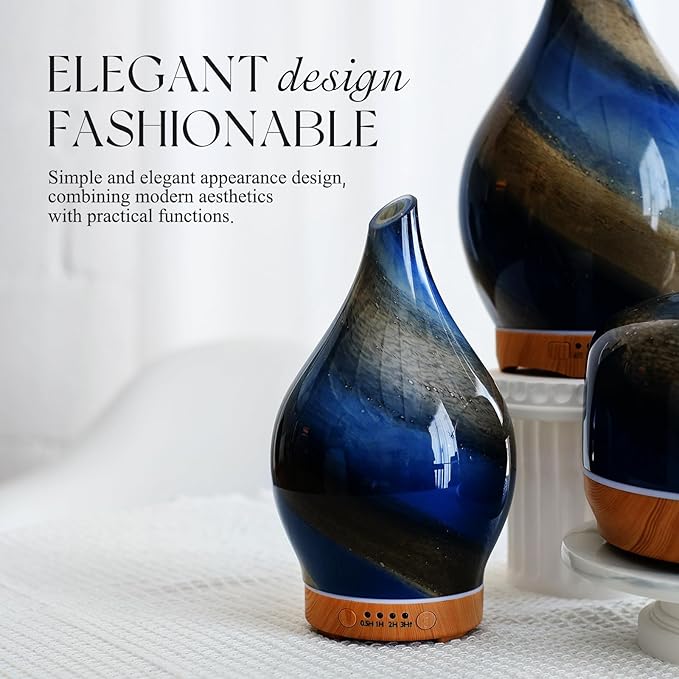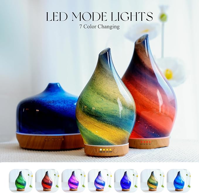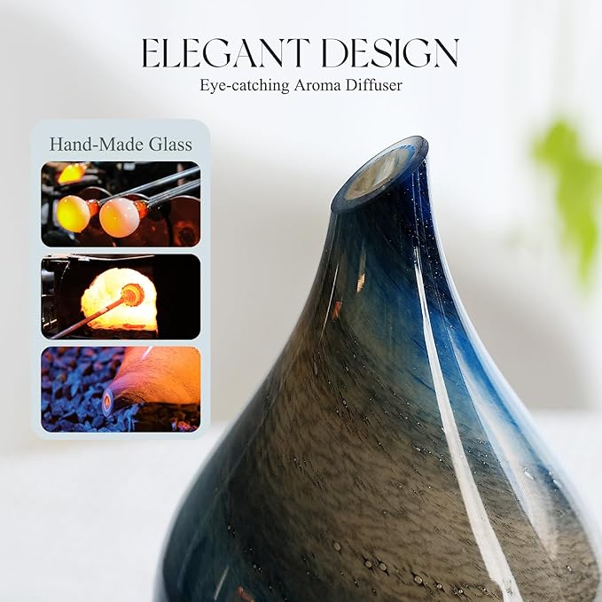 Porseme 150ml Essential Oil Diffuser Glass Color Changing Aroma Air Diffusers Aromatherapy Ultrasonic Cool Mist Humidifier 6 Running Hours Waterless Auto-Off for Sleeping Yoga Office Spa (Galaxy)