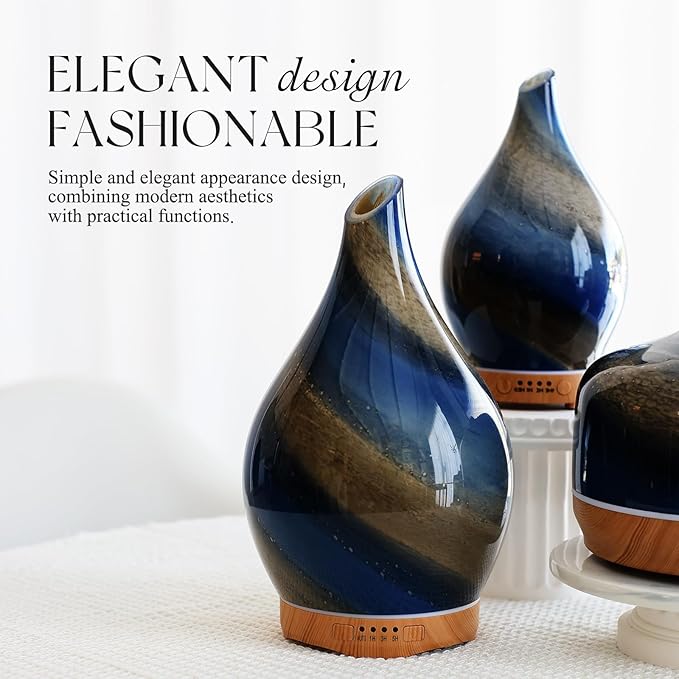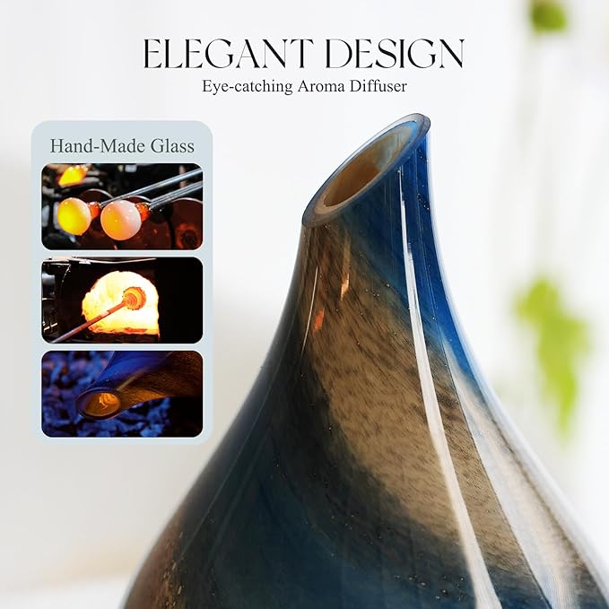 Porseme 280ml Essential Oil Diffuser Glass Color Changing Aroma Air Diffusers Aromatherapy Ultrasonic Cool Mist Humidifier 7 Running Hours Waterless Auto-Off for Sleeping, Yoga, Office, Spa (Galaxy)