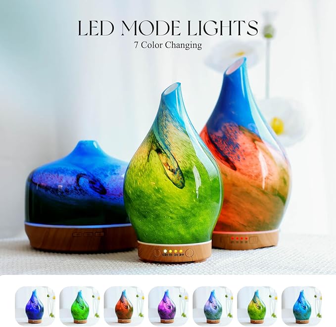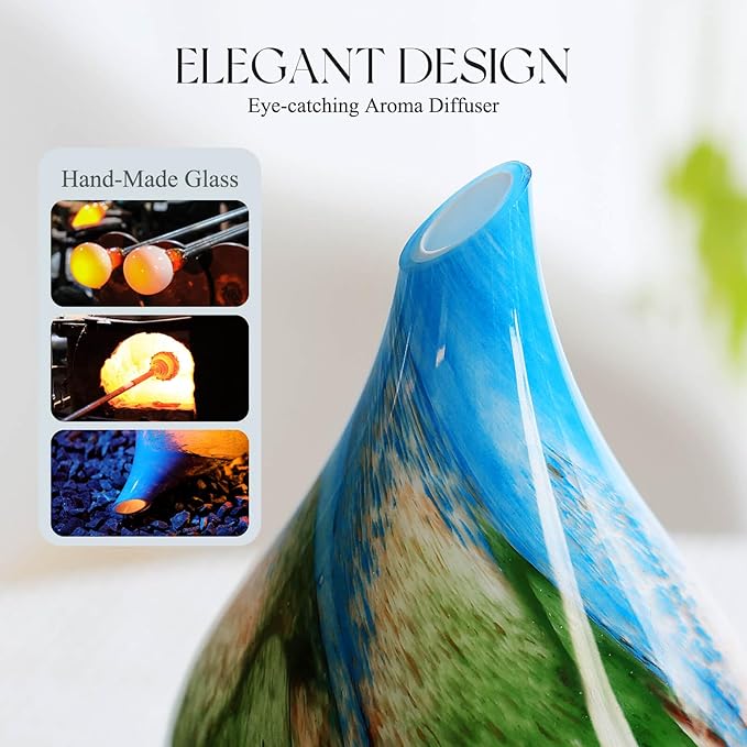 Porseme 150ml Essential Oil Diffuser Glass Color Changing Aroma Air Diffusers Aromatherapy Ultrasonic Cool Mist Humidifier 6 Running Hours Waterless Auto-Off for Sleeping Yoga Office Spa (Blue Grass)