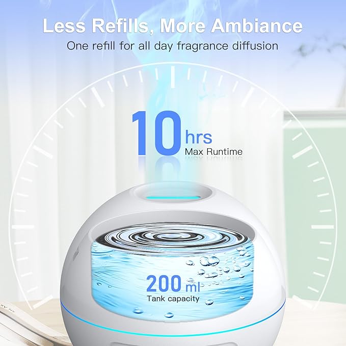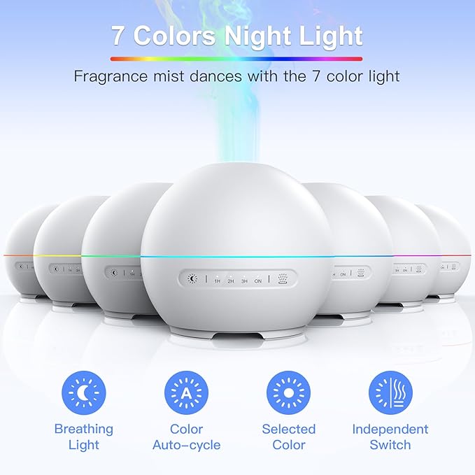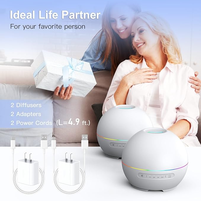 2 Pack Essential Oil Diffuser for Home - 200ml Aromatherapy Diffuser Humidifier with 4 Timers & 7 Colors Night Lights, 20dB Quiet Working for 10 Hours