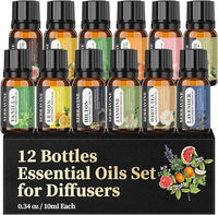 Perfect for Diffusers – 12 Natural Essential Oils Set with Gift Box & Bag | Lavender, Vanilla, Rose, Peppermint & More | Ideal for Aromatherapy, Relaxation & Home Use