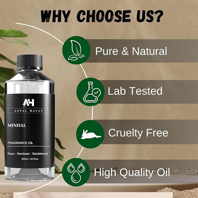 Hotel Scents Diffuser Oil Minhal 500mL – Luxury Home Scent Refill with Rose, Narcissus, Patchouli – Inspired by Iris de Nuit Perfume – Premium Essential Oil for Waterless & Ultrasonic Diffuser