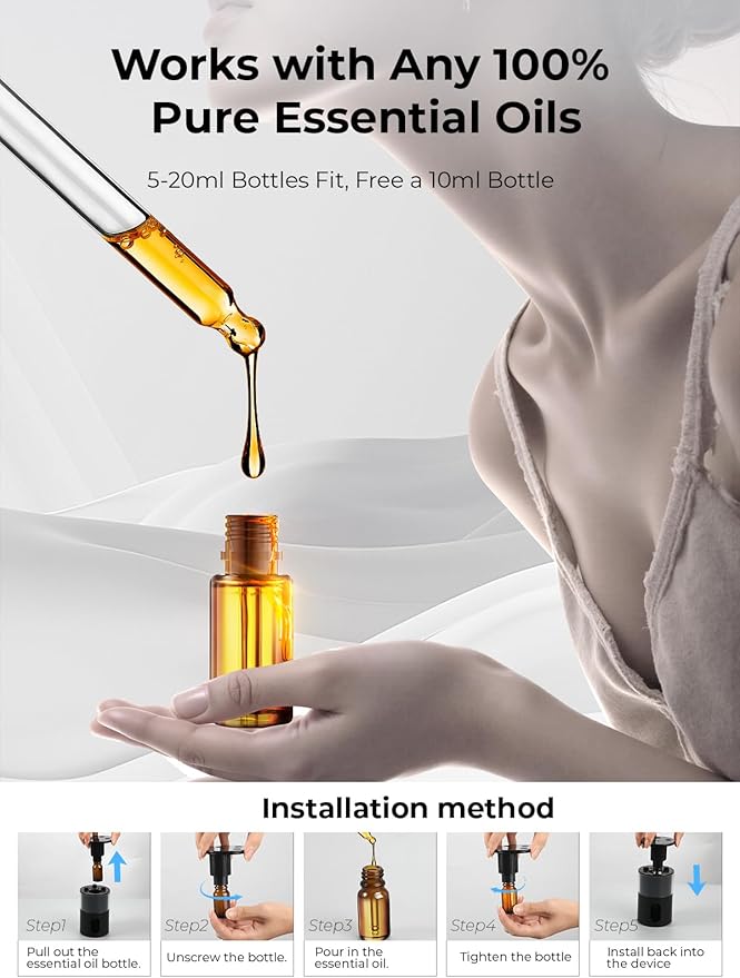 Waterless Essential Oil Diffuser: Battery Mini Scent Diffusers for Home&Car with 8 Color LED Night Light — Cool Mist Aroma Machine Deep Black