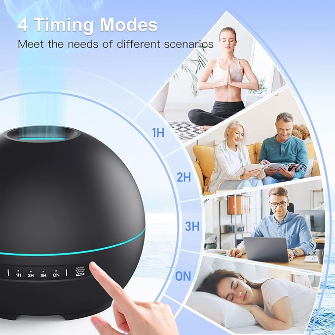 2 Pack Essential Oil Diffuser for Home - 200ml Ultrasonic Aromatherapy Diffuser with 4 Timers & 7 Colors Night Lights, 20dB Quiet Working for 10 Hours (Black+Black)