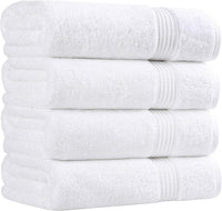 Superior Egyptian Cotton 4-Piece Bath Towel Set for Shower, Bath, Spa, Resort, Hotel, Soft Body Towels, Airbnb Essentials, Apartment, Dorm, Quick Dry, Absorbent, Bathroom Basics, White