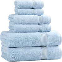 Superior Egyptian Cotton 6-Piece Towel Set, Bathroom Essentials, Towels For Bathroom, Apartment, Airbnb, Guest Bath, Face, Hand, Bath Towels, Washcloths, Absorbent, Fast Drying, Light Blue