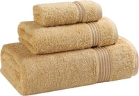 Superior Egyptian Cotton 3-Piece Towel Set, Basic Towels For Bathroom, Home Decor, Guest Bath, Shower, Apartment, Included 1 Face, 1 Hand, 1 Bath Towel, Washcloth, Quick Dry, Gold