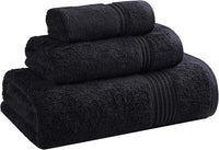 Superior Egyptian Cotton 3-Piece Towel Set, Basic Towels For Bathroom, Home Decor, Guest Bath, Shower, Apartment, Included 1 Face, 1 Hand, 1 Bath Towel, Washcloth, Quick Dry, Black