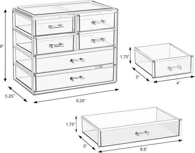 Sorbus Clear Makeup Organizer Display - Stylish Organization and Storage Case for Cosmetics, Jewelry & Hair Accessories - Space Saving Makeup Organizer for Vanity & Bathroom (2 Large, 4 Small Drawers)