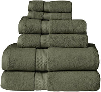 BNM Egyptian Cotton 6-Piece Towel Set, Includes 2 Face Towels, 2 Hand Towels, and 2 Bath Towels, Attached Loop for Easy Hanging and Storage, Hotel Quality, Perfect for Bathroom or Spa, Forest Green