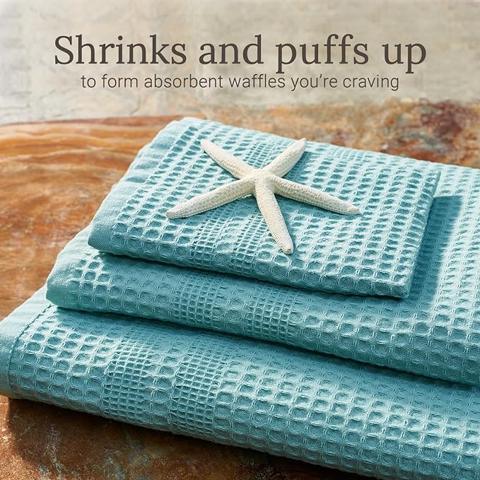 GILDEN TREE Waffle Towels Wash Cloths for Showering, Exfoliating Washcloth Face Towels, Quick Dry Towel Cotton Washcloths Set of 4, Classic Style (Seafoam)