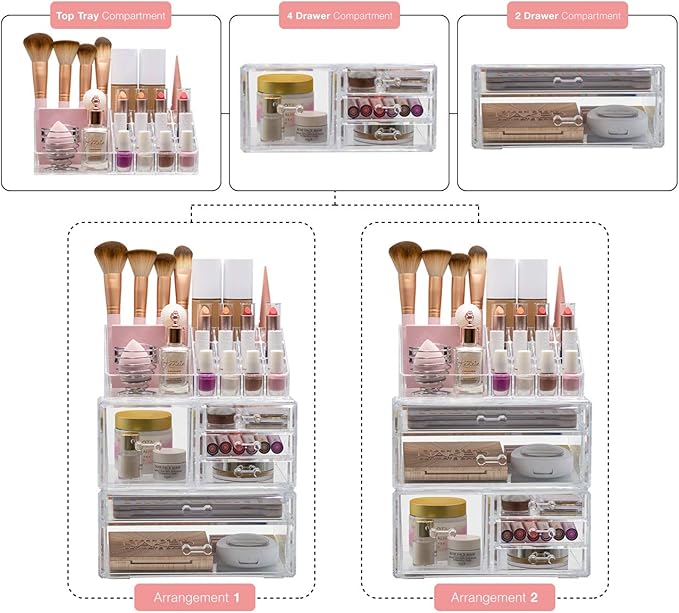 Sorbus Large Clear Makeup Organizer - Detachable 3-Piece Jewelry & Make Up Organizers and Storage Set - Spacious Cosmetic Display Tower - Makeup Organizer for Vanity, Bathroom, Dresser & Countertop