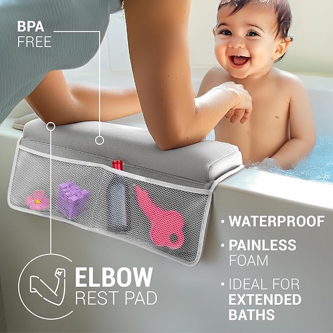 colsen Baby Bath Kneeler and Elbow Kneeling Rest Pad Set – Comfortable, 1.5” Thick, Painless, Non-Slip, Foldable Mat for Bathing Parents, with Toy Organizer for Babies and Toddlers - Grey