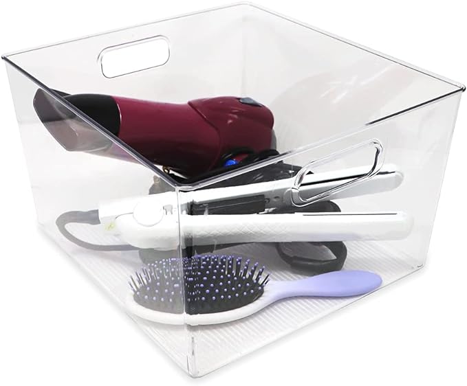 Isaac Jacobs 3-Pack XL Clear Storage Bins with Handles, Plastic Organizer for Office, Home, Kitchen, Pantry, Closet, Kids Room, Cube Shelf, Non-Slip Container Set (3-Pack, Extra-Large)