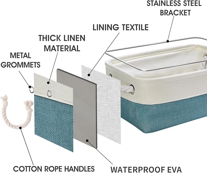 TheWarmHome Storage Bins for Shelves - Small 6 Pack 11.8x7.8x5.2 inch Sturdy Storage Basket W/Handles, Decorative Foldable Storage Baskets for Organizing Closet Nursery Toy(White & Green)